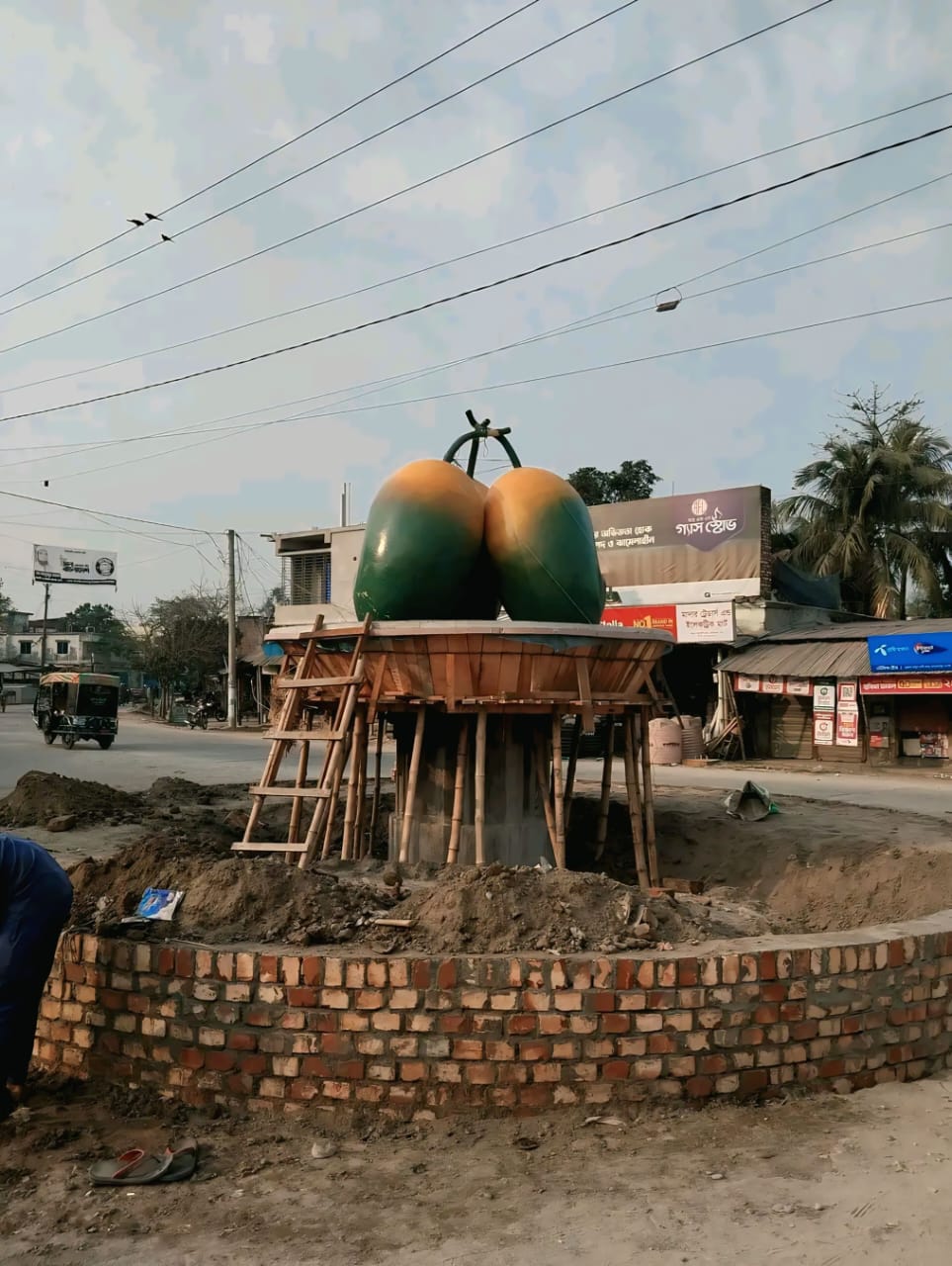 নওগাঁর মহাদেবপুর উপজেলার বাটুলতলি মোড়ে নির্মাণাধীন পরিকল্পিত আম চত্ত্বরের কাজ প্রায় শেষ পর্যায়ে পৌঁছেছে। বুধবার (২৮ জানুয়ারি ২০২৬) চত্ত্বরের মূল আকর্ষণ হিসেবে সেখানে একটি দৃষ্টিনন্দন আমের ভাস্কর্য প্রতিস্থাপন করা হয়েছে।